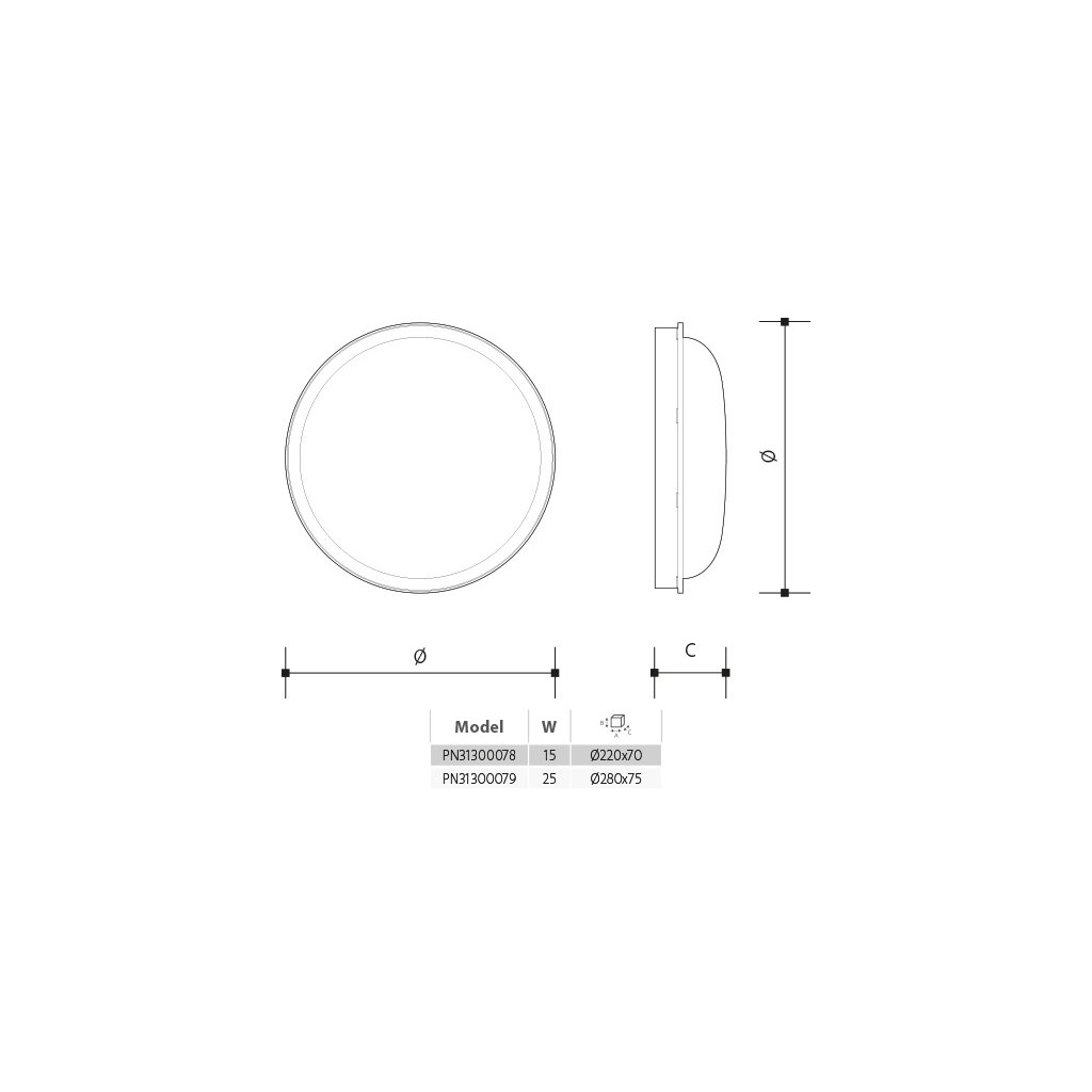 Přisazené nástěnné nebo stropní svítidlo PANLUX kruhového tvaru Mléčný polykarbonátový kryt Vhodné pro osvětlení: interiér, exteriér, chodby, sklepy, sociální zařízení, atd.Doplňkové parametry