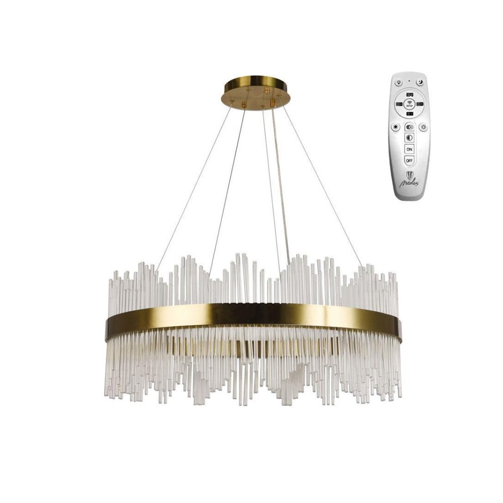 LED design závěsné svítidlo s dálkovým ovladačem RF 2,4GHz značky NEDES, je lampa vhodná do kuchyně, jídelny, ložnice, chodby nebo obývacího pokoje. Tato svítidla skvěle kombinují moderní styl s nejvyšší kvalitou. Světla jsou ovládána SMART technologii pomocí aplikace NEDES Smart. LED designová svítidla přidávají eleganci do Vašeho interiéru. Mezi klíčové vlastnosti patří moderní design, LED technologie, úspornost, spolehlivost a v neposlední řadě jejich cenová dostupnost. Umožňují nastavení barevných odstínů (režimů), intenzity světla (stmívání) a nočního režimu. Disponuje možností ovládání více svítidel jedním ovladačem. Svítidlo si pamatuje poslední nastavení po vypnutí ovladačem, ale i poslední nastavení při ovládání vypínačem, kdy musí být svítidlo v zapnutém stavu po posledním nastavení více než 10sec. a také ve vypnutém stavu více než 10sec. Široká nabídka obsahuje nejkvalitnější osvětlení, které je zároveň energeticky nejlevnější. Naše svítidla zajišťují bezpečnou, snadnou a bezproblémovou instalaci, proto jsou oblíbená na celém světě. -dálkový ovladač RF 2,4GHz + aplikace NEDES Smart (BT)-stmívaní-noční režim-změna barvy světla-možnost ovládání více svítidel jedním ovladačem-paměť posledního nastavení po vypnutí ( i vypínačem, i ovladačem)-paměť posledního nastavení při ovládání vypínačem - svítidlo musí být ve vypnutém stavu více než 10sec. a i v zapatém stavu více než 10sec-změna režimů pomocí vypínače-bezpečná a snadná montáž-nastavitelná délka lanek TECHNICKÉ PARAMETRY spotřeba110Wsvětelný tok7200Lmrozměr (mm)?800chromatičnost (barva světla)3000K - 6500Kstmíváníanonoční režimanodálkový ovladačRF 2,4GHzúhel světla180°napětíAC160 - 265Vživotnost30 000hspínací cyklus25 000 xhmotnost netto (g)12920krytíIP20materiálmetal/krystalbalení1LED jsou nevyměnitelné -cena produktu zahrnuje recyklační poplatek v hodnotě 7Kč bez DPH (8,40Kč s DPH)Doplňkové parametry