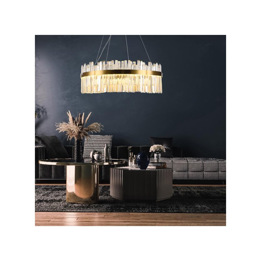 LED design závěsné svítidlo s dálkovým ovladačem RF 2,4GHz značky NEDES, je lampa vhodná do kuchyně, jídelny, ložnice, chodby nebo obývacího pokoje. Tato svítidla skvěle kombinují moderní styl s nejvyšší kvalitou. Světla jsou ovládána SMART technologii pomocí aplikace NEDES Smart. LED designová svítidla přidávají eleganci do Vašeho interiéru. Mezi klíčové vlastnosti patří moderní design, LED technologie, úspornost, spolehlivost a v neposlední řadě jejich cenová dostupnost. Umožňují nastavení barevných odstínů (režimů), intenzity světla (stmívání) a nočního režimu. Disponuje možností ovládání více svítidel jedním ovladačem. Svítidlo si pamatuje poslední nastavení po vypnutí ovladačem, ale i poslední nastavení při ovládání vypínačem, kdy musí být svítidlo v zapnutém stavu po posledním nastavení více než 10sec. a také ve vypnutém stavu více než 10sec. Široká nabídka obsahuje nejkvalitnější osvětlení, které je zároveň energeticky nejlevnější. Naše svítidla zajišťují bezpečnou, snadnou a bezproblémovou instalaci, proto jsou oblíbená na celém světě. -dálkový ovladač RF 2,4GHz + aplikace NEDES Smart (BT)-stmívaní-noční režim-změna barvy světla-možnost ovládání více svítidel jedním ovladačem-paměť posledního nastavení po vypnutí ( i vypínačem, i ovladačem)-paměť posledního nastavení při ovládání vypínačem - svítidlo musí být ve vypnutém stavu více než 10sec. a i v zapatém stavu více než 10sec-změna režimů pomocí vypínače-bezpečná a snadná montáž-nastavitelná délka lanek TECHNICKÉ PARAMETRY spotřeba110Wsvětelný tok7300Lmrozměr (mm)?800chromatičnost (barva světla)3000K - 6500Kstmíváníanonoční režimanodálkový ovladačRF 2,4GHzúhel světla180°napětíAC160 - 265Vživotnost30 000hspínací cyklus25 000 xhmotnost netto (g)15110krytíIP20materiálmetal/krystalbalení1LED jsou nevyměnitelné -cena produktu zahrnuje recyklační poplatek v hodnotě 7Kč bez DPH (8,40Kč s DPH)Doplňkové parametry