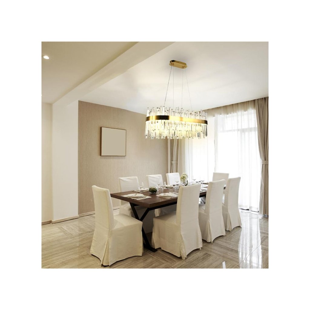 LED design závěsné svítidlo s dálkovým ovladačem RF 2,4GHz značky NEDES, je lampa vhodná do kuchyně, jídelny, ložnice, chodby nebo obývacího pokoje. Tato svítidla skvěle kombinují moderní styl s nejvyšší kvalitou. Světla jsou ovládána SMART technologii pomocí aplikace NEDES Smart. LED designová svítidla přidávají eleganci do Vašeho interiéru. Mezi klíčové vlastnosti patří moderní design, LED technologie, úspornost, spolehlivost a v neposlední řadě jejich cenová dostupnost. Umožňují nastavení barevných odstínů (režimů), intenzity světla (stmívání) a nočního režimu. Disponuje možností ovládání více svítidel jedním ovladačem. Svítidlo si pamatuje poslední nastavení po vypnutí ovladačem, ale i poslední nastavení při ovládání vypínačem, kdy musí být svítidlo v zapnutém stavu po posledním nastavení více než 10sec. a také ve vypnutém stavu více než 10sec. Široká nabídka obsahuje nejkvalitnější osvětlení, které je zároveň energeticky nejlevnější. Naše svítidla zajišťují bezpečnou, snadnou a bezproblémovou instalaci, proto jsou oblíbená na celém světě. -dálkový ovladač RF 2,4GHz + aplikace NEDES Smart (BT)-stmívaní-noční režim-změna barvy světla-možnost ovládání více svítidel jedním ovladačem-paměť posledního nastavení po vypnutí ( i vypínačem, i ovladačem)-paměť posledního nastavení při ovládání vypínačem - svítidlo musí být ve vypnutém stavu více než 10sec. a i v zapatém stavu více než 10sec-změna režimů pomocí vypínače-bezpečná a snadná montáž-nastavitelná délka lanek TECHNICKÉ PARAMETRY spotřeba90Wsvětelný tok6000Lmrozměr (mm)800x350x300chromatičnost (barva světla)3000K - 6500Kstmíváníanonoční režimanodálkový ovladačRF 2,4GHzúhel světla180°napětíAC160 - 265Vživotnost30 000hspínací cyklus25 000 xhmotnost netto (g)14560krytíIP20materiálmetal/krystalbalení1LED jsou nevyměnitelné -cena produktu zahrnuje recyklační poplatek v hodnotě 7Kč bez DPH (8,40Kč s DPH)Doplňkové parametry