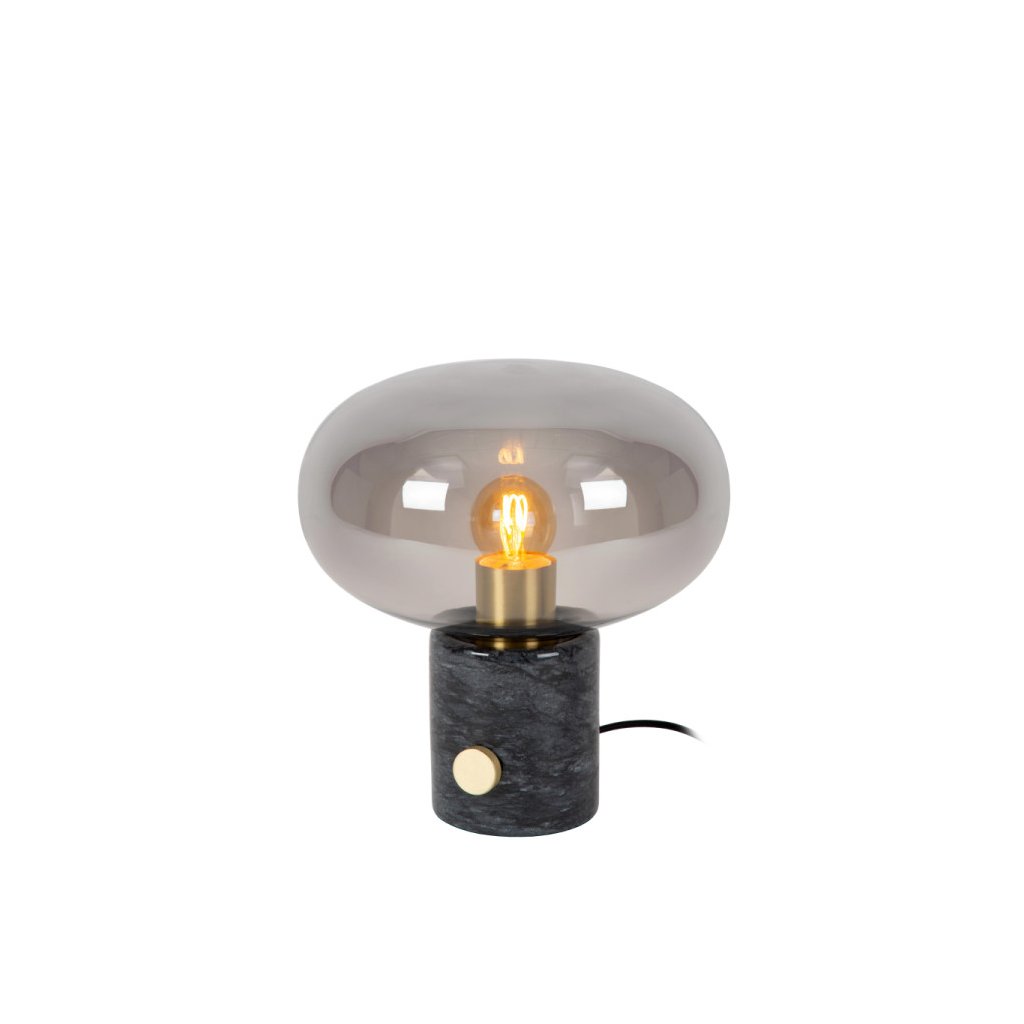 Charlize – elegantní a nadčasové jméno pro tuto stejně elegantní stolní lampu. Kombinace vysoce kvalitní mramorové základny s jantarovým nebo kouřovým skleněným stínidlem činí z Charlize jedinečný retro kousek v každém interiéru. S vhodnou LED žárovkou přináší teplo a útulnost do obývacího pokoje, jídelny nebo ložnice. Kulatou stolní lampu o průměru 23 centimetrů snadno zapnete a vypnete pomocí vypínače, který je zabudován přímo v kabelu – pohodlí na dosah ruky. Jedinečné vlastnosti produktuDoplňkové parametry