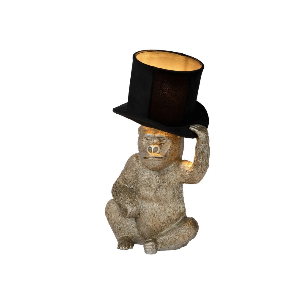 Smekáme před touto sympatickou stolní lampou. Jako uhlazený mladý pán přináší Extravaganza Gust špetku humoru do vašeho obývacího pokoje, ložnice nebo na pracovní stůl. A to stylově. Plastová gorila - neváhejte jí říkat Gust - natahuje levou ruku, aby si zdvihl klobouk. Ale není to jen tak ledajaký klobouk. Uvnitř je ukrytá žárovka. Otevřený vršek propouští světlo volně nahoru, zatímco prostor mezi hlavou gorily a kloboukem rozptyluje paprsky světla dolů. Zapněte tuto extravagantní lampu spínačem na kaDoplňkové parametry