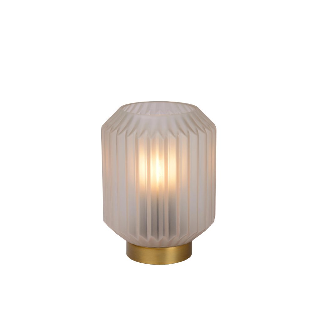 Hledáte stylovou stolní lampu, která se dokonale integruje do vašeho interiéru? Sueno je to pravé jméno. Vyrobená z vysoce kvalitního matného skla na mosazné základně přináší do vašeho domova nádech nostalgie. Jemné, kulaté rýhy ve skle dotvářejí celkový obraz. Sueno je sotva 13 centimetrů široká a zabírá tak akorát místa na jídelním stole. Skvěle vypadá také na konferenčním stolku nebo na polici. Sueno snadno zapnete a vypnete pomocí vypínače na kabelu. Jedinečné vlastnosti produktuDoplňkové parametry