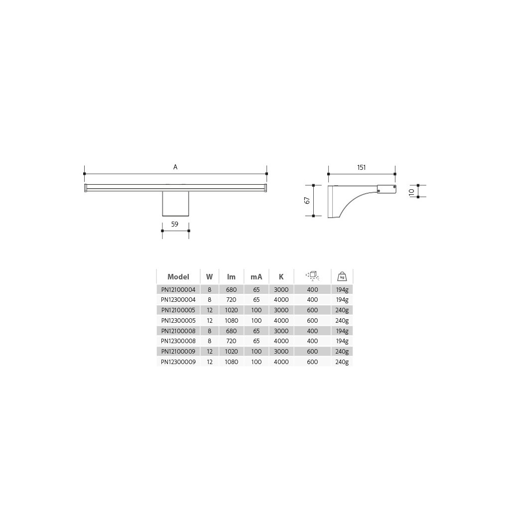 Koupelnové svítidlo s možností instalace přímo na zeď (viz foto) Dostupné varianty: - 8W / 12W - teplá bílá / neutrální - - stříbrná a černá Pokud nechcete svítidlo montovat na stěnu, podívejte se na podobné svítidlo - PANLUX ARVEN, které je určeno k montáži přímo na zrcadlo.Doplňkové parametry