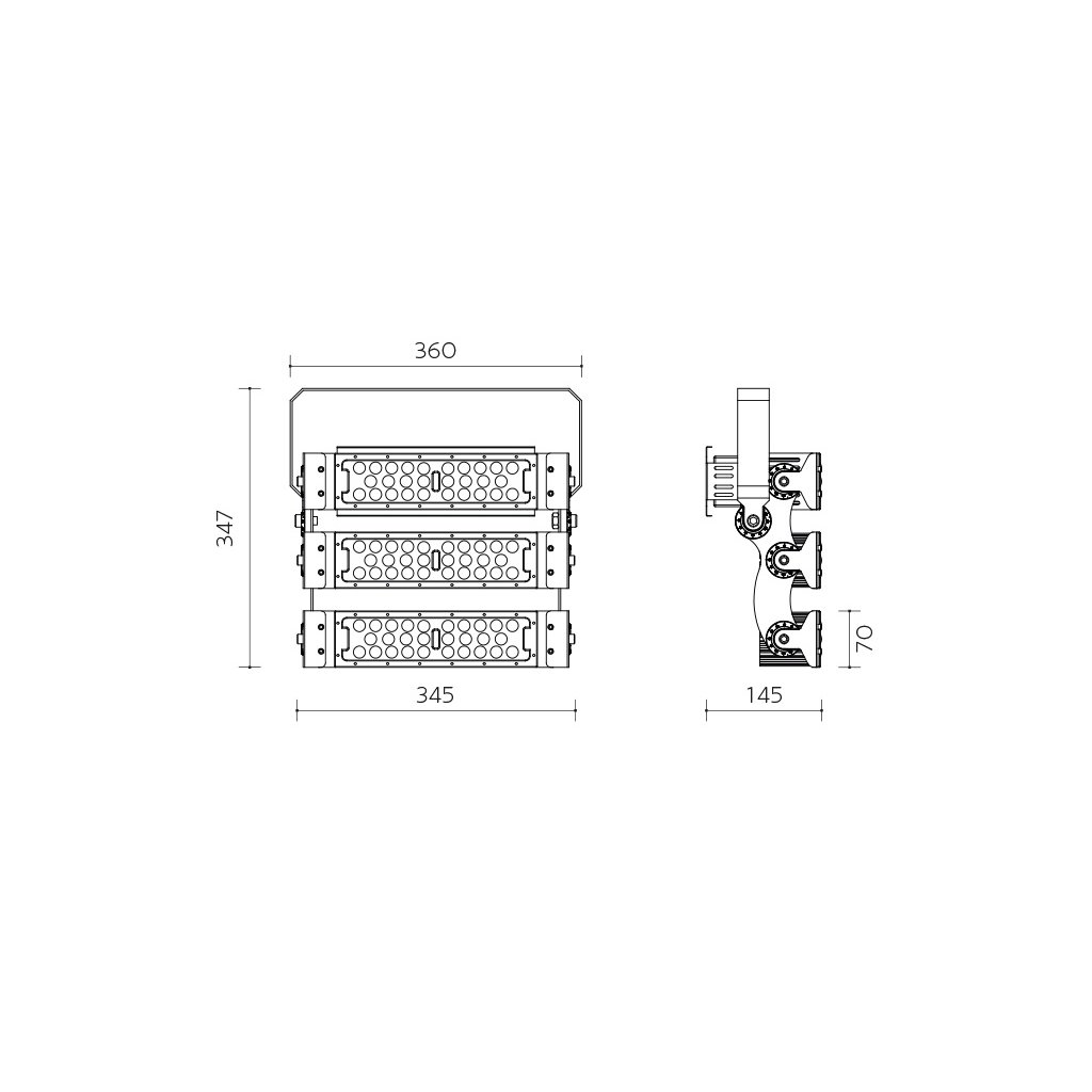 Průmyslový reflektor Úhel vyzařování 60° 3 moduly - úhel vyzařováni lze dle potřeby manuálně nastavit (viz ilustrační obrázek)Doplňkové parametry