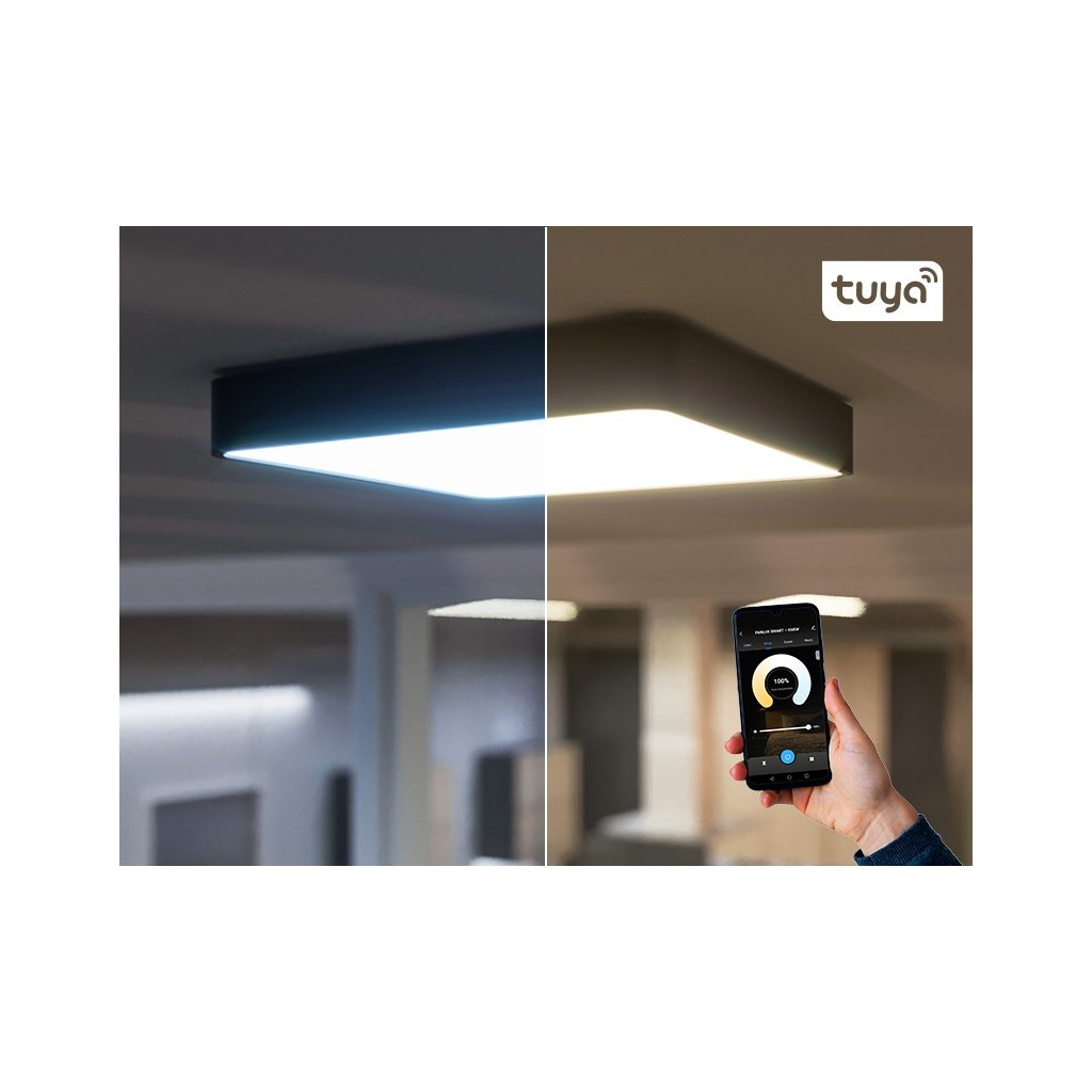 Hranaté přisazené stropní či nástěnné LED svítidlo z polykarbonátu. Svítidlo je velmi odolné vůči poškození (IK08) a má vyšší krytí IP54 PANLUX SMART Svítidlo je kompatibilní s aplikací Tuya/ Smartlife, poté lze na svítidle jednoduše nastavit teplotu a intenzitu světla dle potřeby, případně nastavit barvu světla ve spektru RGB. Dále je možné nastavovat různé scény a schémata svícení. Pohodlná montáž - kryt lze oddělit od základny, základna se snadno samostatně namontuje na strop/stěnu a poté se na ní kryt jednoduše nacvakne. Varianty: Zpracování: černá a bílá Standardní verze svítidla bez Tuya: VERONA Obdobné svítidlo v kulatém designu VERONA CIRCLEDoplňkové parametry