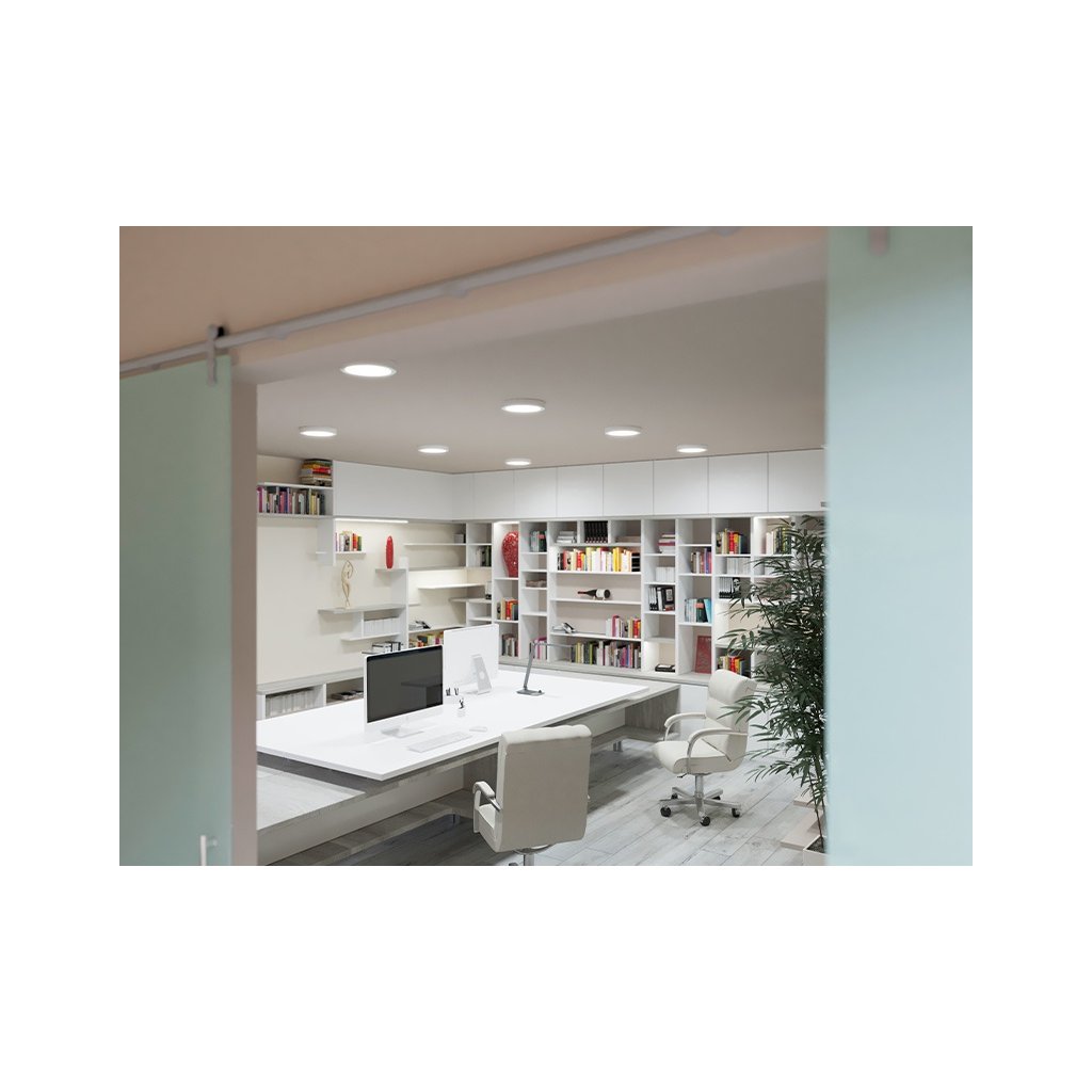 Kancelářské LED svítidlo PANLUX kulatého tvaru Nastavitelná barva světla od teplé až po studenou (3000-6000K) CCT Možnost přisazené i vestavné montáže Při vestavné montáži nastavitelné rozpětí uchycovacího mechanismu - svítidlo lze namontovat do různě velkých otvorů (již od O65mm) - viz návod v souborech ke stažení Celkem 4 varianty produktu: - 18/30W - se senzorem / bez senzoru RADAR SENZOR Radar senzor zaznamená pohyb ve vysílaných vysokofrekvenčních elektromagnetických vlnách v nastaveném dosahu a intenzitě světla Při zaznamenání pohybu rozsvítí svítidlo na určený časový interval SENS - Dosah - max. 6m TIME - Zpoždění vypnutí ~30sDoplňkové parametry