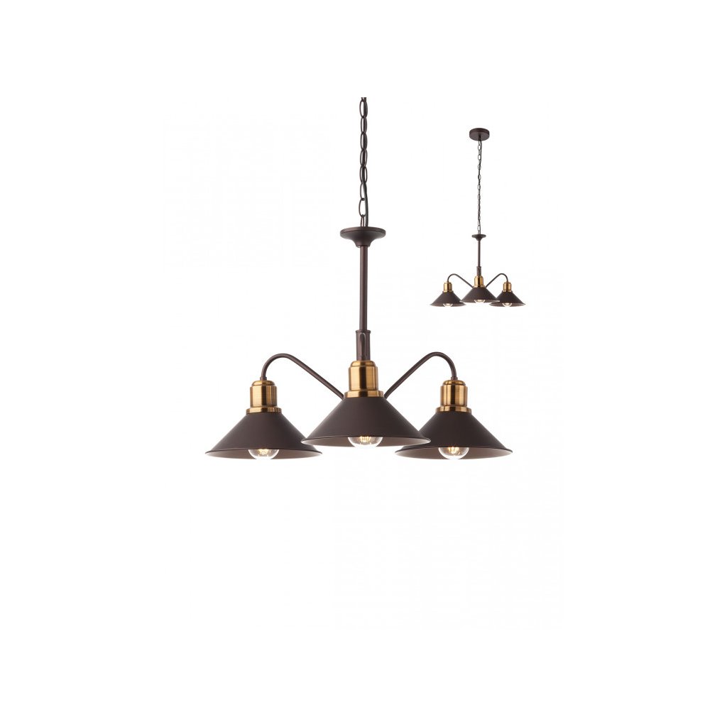 Interiérový lustr, kovová struktura a difuzor lakovaná v matné hnědé barvě se starožitným detailem z mosazi.Doplňkové parametry