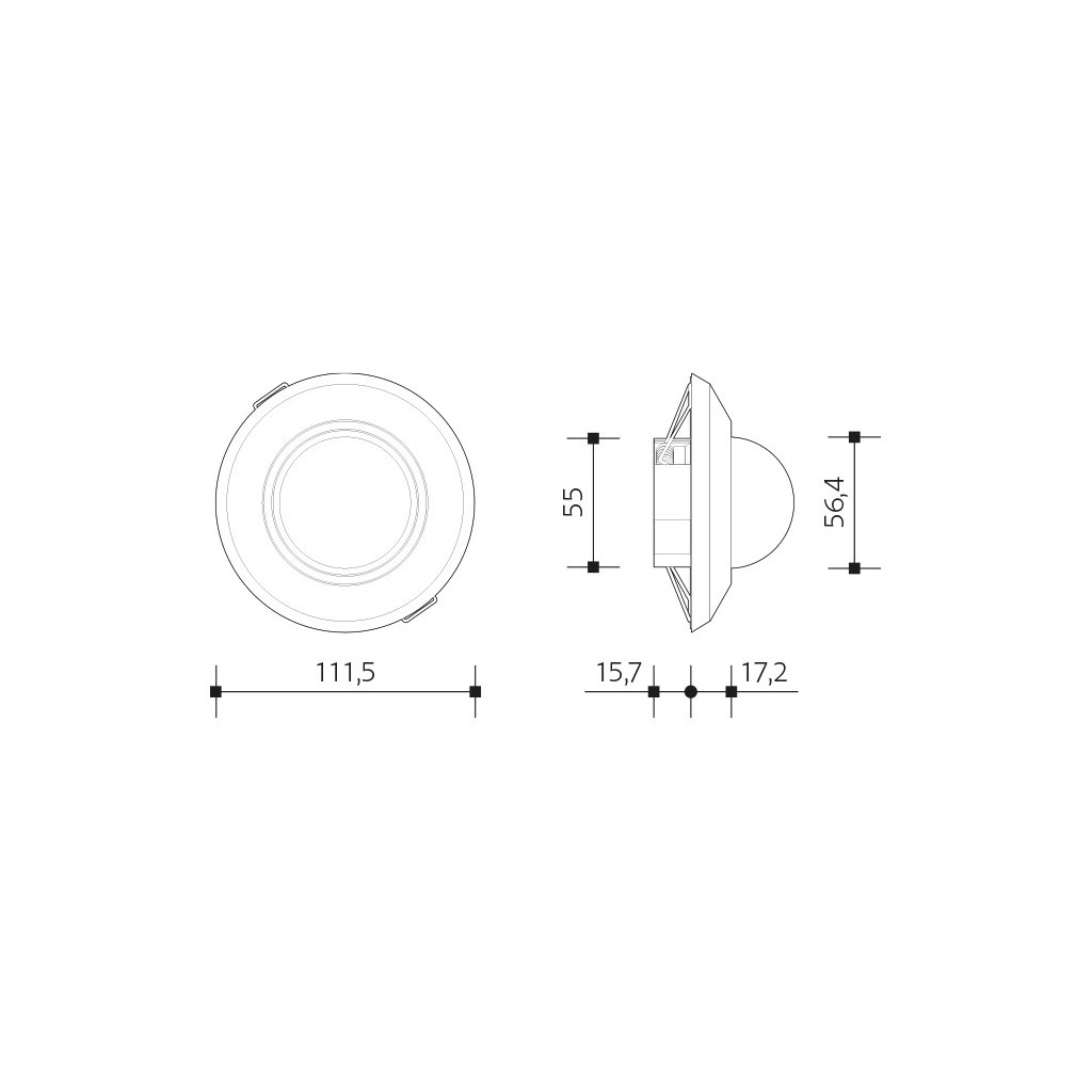 PIR senzor s pohybovým čidlem snímající okolí v detekčním úhlu 360°. Maximální dosah je 10m. Možnost vestavné i přisazené instalace.Doplňkové parametry