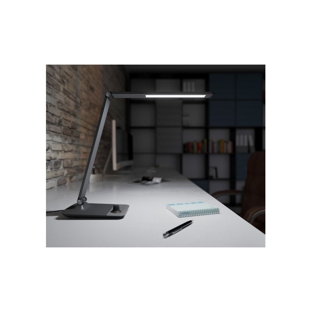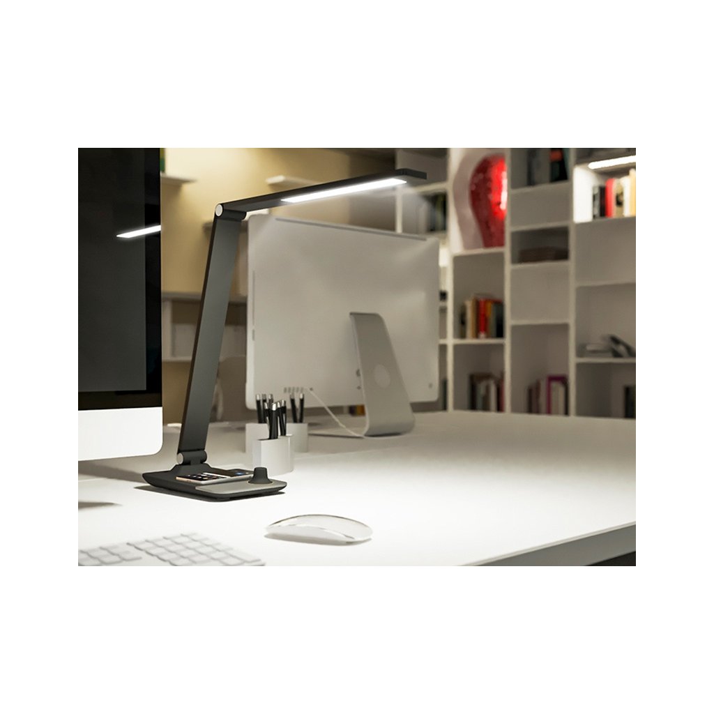 Sháníte elegantní stolní lampu, která by se vyjímala na psacím stole v pracovně, kanceláři nebo ve studentském pokoji? Designová stolní lampa MASTER spolehlivě osvítí pracovní plochu a zcela jistě oceníte i bezdrátové nabíjení, stačí mobilní telefon položit na podstavec lampy. Obsah balení: stolní lampička a síťový adaptér Klíčové vlastnosti: Barva: vyberte si černé, vesmírně šedé nebo bílé provedení, vždy s jemným oranžovým detailem kolem ovládacího tlačítka (viz fotky) Integrovaní bezdrátová nabíječka pro mobilní telefony Intuitivní ovládání pomocí jednoho otočného tlačítka Možnost stmívání světla (ve všech teplotách barev) Možnost nastavení barvy světla od teplé, přes neutrální až do studené (3000-5000K) Sklápěcí rameno pro nastavení ideálního úhlu svícení USB OUT 5V DC | 1A - USB výstup pro nabíjení dalších mobilních zařízení Noční světýlko Garantovaná životnost 50 000 hodin Intuitivní ovládání pomocí jednoho otočného tlačítka na podstavci: Krátkým stisknutím tlačítka zapnete světlo, přepnete barvu světla, případně zapnete jen malé noční světýlko na konci lampy. Otočením tlačítka ovládáte jas světla, tedy můžete jej stmívat dle potřeby. Podržením tlačítka lampu vypnete. Bezdrátové nabíjení mobilního telefonu Mobilní telefon stačí položit na podstavec lampy a telefon se začne automaticky nabíjet (zařízení musí podporovat bezdrátové indukční nabíjení). PRODLOUŽENÁ ZÁRUKA JE PODMÍNĚNA REGISTRACÍ NA ZARUKA.PANLUX.CZDoplňkové parametry