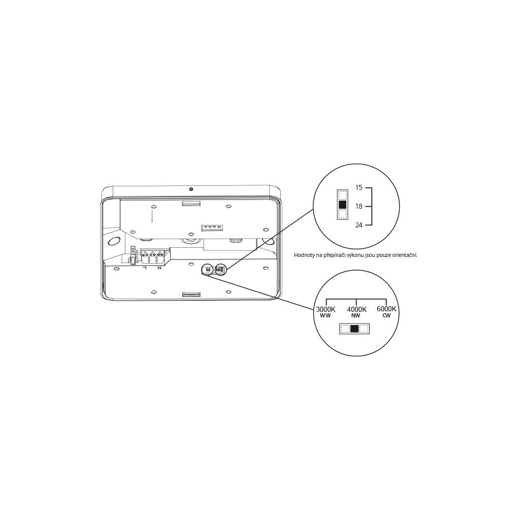 Hranaté přisazené stropní či nástěnné LED svítidlo z polykarbonátu. Svítidlo je velmi odolné vůči poškození (IK08) a má vyšší krytí IP54 CCT - Přepínání teploty světla Pod krytem svítidla je přepínač, který umožňuje nastavení teploty světla: 3000K teplá – 4000K neutrální – 6000K studená Přepínání výkonu světla Pod krytem svítidla je přepínač, který umožňuje nastavení výkonu světla. 15W – 18W – 24W Není tedy potřeba rozhodovat se o teplotě a výkonu světla při nákupu. Můžete se rozhodnout až doma, když jsou světla namontovaná - podle toho co vám bude nejvíce v dané místnosti vyhovovat. Pohodlná montáž - kryt lze oddělit od základny, základna se snadno samostatně namontuje na strop/stěnu a poté se na ní kryt jednoduše nacvakne. Varianty: Chytrá verze svítidla: VERONA SMART Obdobné svítidlo v kulatém designu VERONA CIRCLEDoplňkové parametry