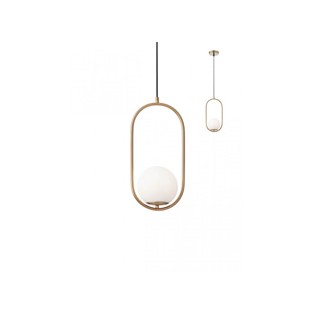 Interiérové závesné svietidlá , kovová konštrukcia v saténovej zlatej, difúzor z fúkaného opálového skla.Doplňkové parametry